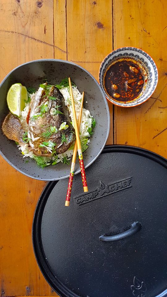 - While fish is cooking make dipping sauce by mixing all ingredients together to taste.